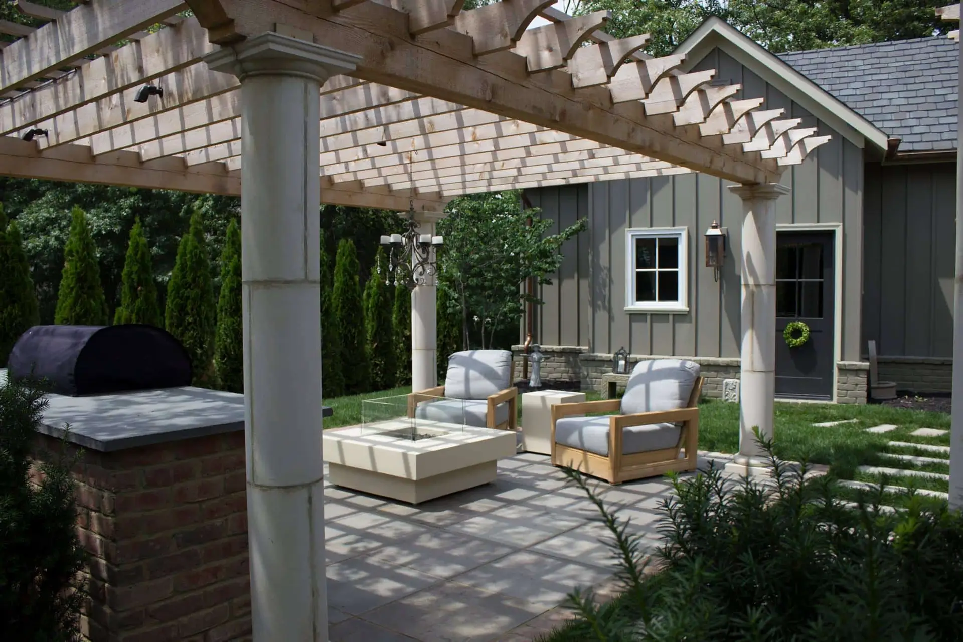 In this 2017 Award winner, we took existing features with the addition of a new carriage house to create an all new stunner. This house was originally designed by Peabody Landscape Group as a Parade of Homes house in 2009. In 2017, as part of remodel/addition project, the backyard was transformed, tying the existing elements like the bluestone patio and fireplace together with the new structures, fountain, bar and carriage house. The use of the 3D allowed the client to see this transformation before a shovel touched the ground.